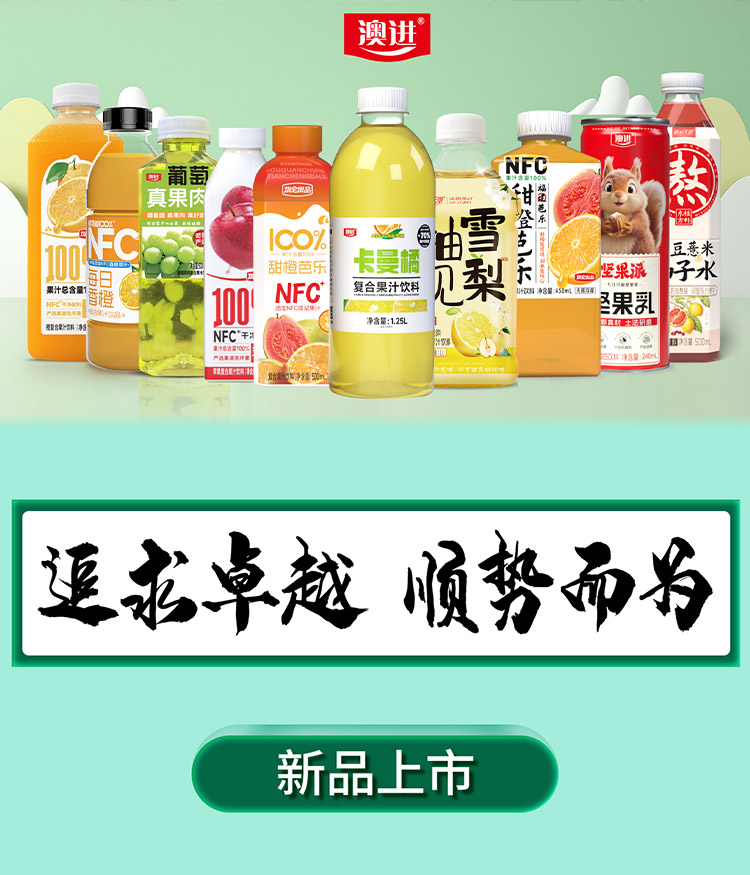 “澳进乳业”隶属于虎润集团旗下山东澳进饮料有限公司,总部位于山东省枣庄市市中区枣庄经济开发区长江三路2号,属于枣庄市招商引资企业。公司正式注册于2017年5月,现有员工260余名,下设生产部、检验研发中心、食品安全与环保部、市场部(其中包含本埠3大事业部、省内外7大办事处)、采购部、人资部、企划与网络部、财务部、总经办等部门。澳进产品遍及全国20多个省市自治区直辖市。 公司现拥有6条先进饮料灌装生产线,配以先进的配料间、发酵车间、巴氏杀菌车间。配置先进的全自动包装机、先进的实验室设备。产品生产从原材料采购到成品入库,每一个生产环节都严格检测,确保品质合格才能投放市场,保障食品安全。公司一如既往秉承“食品安全责任重于泰山,优质产品是走向世界的桥梁”的理念,做消费者放心、营养、健康的饮料。公司经过多年的市场培育和品牌运营,“澳进”饮料凭借独特的口感、放心的质量、优质的品牌,日益成为消费者满意放心的新一代饮料,在全国饮料行业中拥有较高的市场占有率和品牌美誉度。近年来公司坚持以品质为保障,品牌为优势,服务顾客为导向,先后推出“酸奶饮品”“乳酸菌饮品”“维生素饮料”“植物蛋白饮料”等自主品牌饮料。关于自主品牌的发展,我们曾遇到过瓶颈期,但在全体员工的辛勤劳动和不懈努力下,自主品牌路线正朝着健康良好的方向发展。我们相继完成了300多个品牌商标标识注册;十几项专利;积极参加各种全国性及省级大型糖酒会、展销会。 未来,公司将不断提高产品质量、服务质量、提升品牌形象、加强公司内部管理、严把食品安全关、严把商标标识关;公司将继续坚持“质量成就品牌,创新**未来”,以食品安全为基础,以顾客满意为目标,为每一位消费者带来优质健康的产品和真诚的服务。我们将在各级政府和主管部门的关怀和指导下,在广大供应商和客户的支持和帮助下,抓住机遇、开拓创新、不断进取,把澳进做大做强。