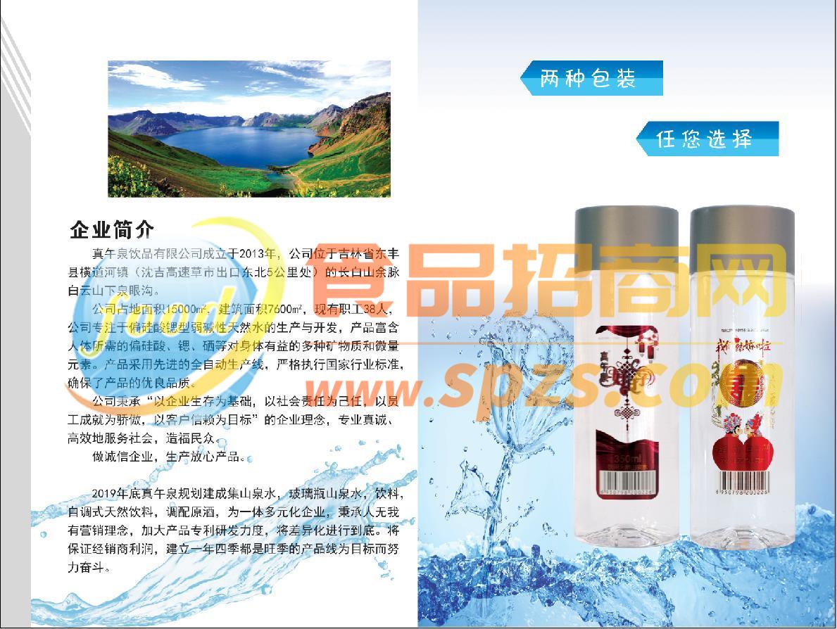 东丰县真午泉饮品有限公司成立于2013年,公司位于吉林省东丰县横道河镇(沈吉高速草市出口东北5公里处)的长白山余脉白云山下泉眼沟。 公司计划投资5000万元,其中一期投资2000万元,年产瓶装水3000万瓶,桶装水100万桶。二期达产后,年产瓶装水1亿3千万瓶,桶装水400万桶。公司占地面积39010㎡,建筑面积7600㎡,现有职工68人。公司专注于偏硅酸锶型弱碱性天然水的生产与开发,产品采用先进的全自动生产线,严格执行国家行业标准,确保了产品的优良品质。公司秉承“以企业生产为基础,以社会责任为己任,以员工成交为骄傲,以客户信赖为目标”的企业理念,专业、真诚、高效地服务社会,造福民众,做诚信企业,生产放心产品。